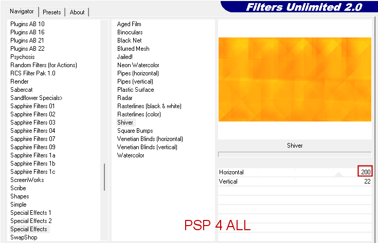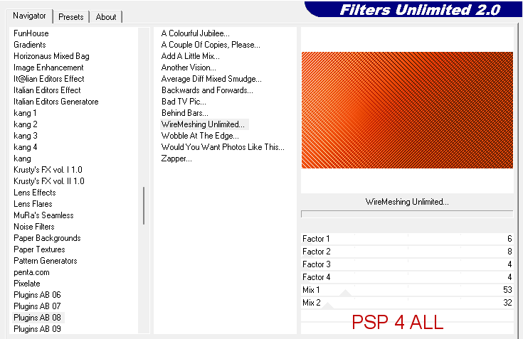 FU2 > Special Effects > Shiver. Plugins AB 08 > WireMeshing Unlimited