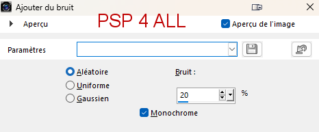 16. Sélectionner le gradient glow avec la baguette magique et appliquer le même bruit. 17. Ne rien sélectionner. 18. Dupliquer et mettre la copie à droite sur sml orange square - right. 19. lrg green rectangle - Remplir avec #ea5a14. 20. Réglage > Ajouter/supprimer du bruit > Ajouter du bruit. 21. lrg white rectangle - Remplir avec #fed513. 22. lrg brown rectangle - Coller le papier Early Fall (3) dans la sélection. 23. left white rectangle - Remplir avec #fed513. 24. left orange rectangle - Ne rien changer. Garder la couleur. 25. Remplir avec un gros plan du tube. 26. Mettre ce calque sur Recouvrement. 27. left white rectangle - Remplir avec #fed513. 28. left orange rectangle - Ne rien changer. Garder la couleur. 29. Remplir avec un gros plan du tube. 30 Mettre ce calque sur Recouvrement. 31. sml brown rectangle - Ne rien changer. Garder la couleur 32. sml white rectangle - Remplir avec #fed513. 33. Prendre le papier Early Fall (12). Image > Renverser verticalement. 34. sml green rectangle - Coller le papier Early Fall (3) dans la sélection. 35. text - Fall - left & text - Fall right - Ne rien changer. 36. text - wordart - Remplir avec #65271c. 37. Appliquer Eye Candy 4000 > Gradient Glow. 38. Sous l'onglet Color, choisir Medium et la couleur #fed513. 39. Sous l'onglet Basic, mettre Glow Width à 3.16. ETAPE 2 - Eléments et Tube Ombre portée = 3, 5, 50, 10. 40. Early Fall (11) - A mettre au-dessus du calque lrg brown rectangle. C'est le calque avec le papier Early Fall (3). 41. Supprimer ce qui dépasse en bas. 42. Early Fall (40) - A gauche. 43. Dupliquer. Image > Miroir horizontal. 44. Early Fall (43) - A gauche. 45. Dupliquer. Image > Miroir horizontal. 46. Early Fall (49) - A droite. 47. Dupliquer. Image > Miroir horizontal. 48. Ajouter le tube . 49. Early Fall (20) - Un en haut à gauche et un en bas à droite. ETAPE 3 - Crédits 50. avec une police comme Pixelette ou toute autre petite police. 51. Enregistrer. Martine 11 octobre 2023 Si vous avez des questions, n'hésitez pas à me contacter. ![]() ![]() |