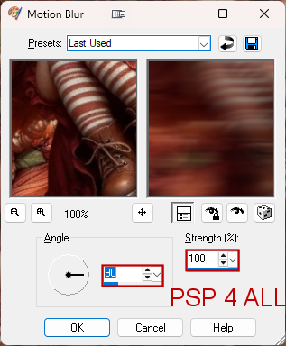 32. Right click on this layer in your Layer Palette > Properties > Blend mode on 40. 33. Duplicate this layer. 34. Properties of this layer > Blend mode on 20. 35. Merge down. 36. And again. Layers > Merge down. 37. Duplicate this merged layer. 38. Image > Free Rotate > 90° Droite. 39. Hit K on your keyboad to activate the Pick Tool ![]()