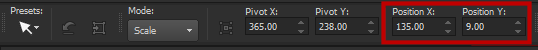 Open an image 680x550 and fill with white. Add a layer Sélections > Select All and copy paste Autumn Romance - p6 in the Selection. Selections > Select None. Open Mask 84 - Moonbeams and Spiderwebs. Layers > New mask layer > From an image. OK. Layers > Merge > Merge group. Autumn Romance - ele64 - 80%. On the left. Autumn Romance - ele52 - 50%. On the right. Autumn Romance - ele49 - 75%. Edition > Copy. On your work image, Edition > Paste As New Layer. Click on the Pick tool (K). Enter these parameters for the Position X and Position Y on the toolbar.
