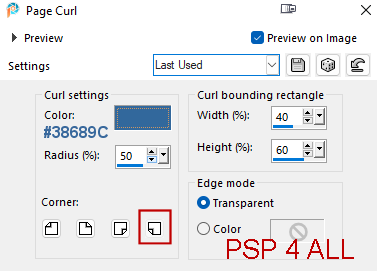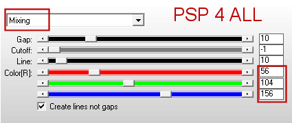 Selections > Promote Selection to Layer. Selections > Select None. Apply a Drop Shadow 3, 3, 75, 5 color #38689C and repeat but change H and V: -3, -3, 75, 5. Back to the original layer, apply AP Lines - SilverLining > Mixing. I used the RGB for the darker blue "#38689C" with Red on 56, Green on 104 and Blue on 156.