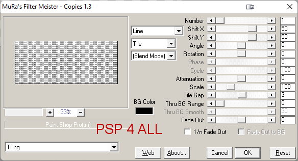 On the original layer: set the opacity around 30. Text: With the font Pixelette, in black, create as vector, write Back To School or the text of your choice. Objects > Align > Center in Canvas. Promote selection to layer. Apply MuRa's Meister > Copies