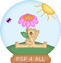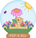 Et comme Meneka m'a dit que je pouvais prendre un autre ourson, j'ai pris le même mais avec une position différente et je l'ai coloré exactement comme l'autre. J'ai ouvert une autre copie de mon image avec tous les calques et puis j'ai placé ce nouveau calque avec ce deuxième ourson juste au dessus de mon premier ourson. Et j'ai fermé le calque avec le premier ourson. Et puis Calques > Fusionner visible et j'ai enregistré cette nouvelle image avec ce deuxième ourson: monglobe_ourson2.psp. Ouvrez Animation Shop et cliquez sur l'assistant d'animation. Ajoutez vos deux images: monglobe_ourson1.psp et mon globe_ourson2.psp et mettez 250 pour la durée d'affichage. Voilà mon résultat: