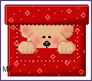 ![]() You can download my E-Book which will let you work without being connected. ![]() Then open Paint Shop Pro. I advise you to zoom in as many times as you need to so you can see what you are doing better. Zoom in on the images in the zipped file too. Open the outline: MF_BearInBox_mf07.psp. Then Window > Duplicate. Best not to work on the original. So close it. Now click on the copy and save it as BiB1.psp. Make sure you are on the correct layer and then colour the lid with the bear and then, don't forget the shadows under the paws then change layer and colour the box.