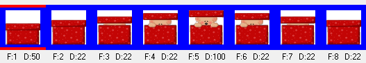 Then click on the scissors. Merge visible these two layers. Name BIB Image 2. Close this layer and open these two layers: box1 and lid1. click on lid1 and move downwards by 38 pixels. Select and remove the bear. Merge visible the two layers and name BIB Image 1. Your animation is ready. Open all the layers, you should have 5 in all: