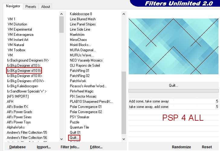Filters Unlimited 2.0 >&<Background Designer sf10II> > Quilt