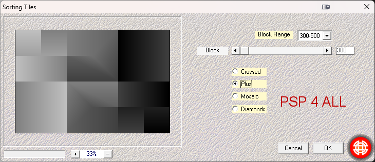 ![]() Matériel: My selections, Deco, Texts & the Eye Candy 5 Impact preset. Download here. Filtres: Mehdi > Sorting Tiles FU2 > &<Background Designers IV > @Refractor FU2 > &<Background Designer sf10 FU2 > &<Background Designer sf10 II> > Slice N Dice AAA Frames > Foto Frame penta.com > Dots VM Experimental > TeeWee It@lian Editor Effects > Effeto Fantasma Selections & Eye Candy Preset: Place the selections in the Selections folder of your PSP. To import my preset into Alien SKin Eye Candy 5 : Impact - Double-click on the preset and it will install directly in the Settings folder of Alien Skin Eye Candy 5. Fonts: Pixelette for the credits. ****************************** *** Depending on the colors & tube you are going to use, feel free to change the mode and opacity of the layers. STEP 1 - Background 1.Open an image 900x600. Fill with white. 2. Add a layer and fill with a linear gradient black and white, angle on 90° and Repeat on 0. 3. Apply Mehdi > Sorting Tiles.