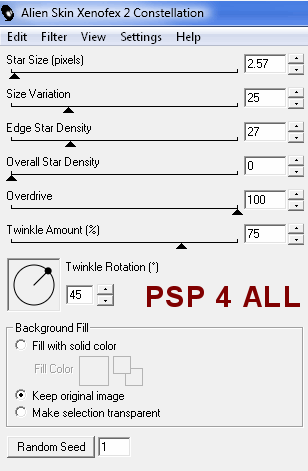 except when applying the Constellation filter, click once on Random Seed. Copy