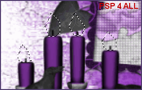 ETAPE 6 - Les Bougies Se placer sur le calques Bougies et dupliquer deux fois pour avoir 3 copies : Bougies 1, Bougies 2 et Bougies 3. Fermer Bougies 2 et Bougies 3. Prendre l'outil Lasso, à main levée et dessiner 4 flames.