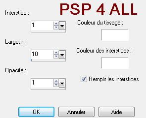 Keep the selection and paste your tube as a new layer - I used the tube close-up supplied - resize it then Image > Mirror. Click on Selections > Invert and hit Del on your keyboard. Change the mode of this layer from Normal to Screen. Selections > Select None. Apply drop shadow on Circle 1 back layer. STEP 6: Circle 2 Click on this layer and then Image > Flip and Image > Mirror. Now repeat exactly what you have done in STEP 5 but this time do not mirror the tube. Selections > Select None. Apply the same drop shadow on Circle 2 back layer. STEP 7: Pixel Words There's a typo so I have redone them. Delete the Pixel Words layer. Click on the Text tool, Vector, size 10 and Visitor TT2 BRK font. Colour=#000000. Then click on Objects and choose Align > Center in Canvas. Click on Layers > Convert to Raster Layer. Apply Mura Meister > Copies. Choose Tiling in the Preset Menu on the left at the bottom - choisir Tiling. Use the default settings except for Tile Gap: enter 3 instead of 0. Click on the Circle 1 layer. S Selections > Invert and hit Del on your keyboard. Change the mode of this layer to Soft Light. Repeat these steps for the Pixel Words above Circle 2. STEP 8: Rectangle 2. Click on the layer then Image > Rotate left 7° to straighten the rectangle. Selections > Select All > Select > Float > Select > Defloat and fill with the gradient we have used before. Apply PSP Weave effect - Effects > Texture effects > Weave