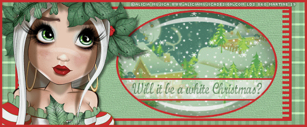 Réglage > Luminosité et Contraste > Luminosité / Contraste - Luminosité sur 20 et Contraste à 0. Puis appliquer une ombre portée - V=4; H=2; O=80; F=5. Couleur de l'ombre = #FFFFFF. Sélections > Ne rien sélectionner. Ajouter votre tube à gauche. ETAPE 5 - La Neige Ouvrir l'animation Neige_Snow dans Animation Shop. Edition > Sélectionner > Sélectionner tous les calques et Exporter dans Paint Shop Pro. Dans Paint Shop Pro, vous mettre sur le calque juste dessous le Verre. Vous êtes sur le calque Image. Sélections > Sélectionner tout. Sélections > Flottante > Sélections > Statique. Animation Neige : cliquer sur Frame1. Edition > Copier. Et sur votre image de travail Edition > Coller comme nouveau calque. Renommer Neige 1. Répéter avec le Frame2 de l'animation Neige. Renommer Neige 2. Et avec tous les frames jusqu'au Frame10. Vous aurez 10 calques Neige numerotés de 1 à 10. Pour supprimer la neige à l'extérieur : Sélections > Inverser. Se mettre sur le calque Neige 1. Cliquer sur Suppr. Se mettre sur le calque Neige 2. Cliquer sur Suppr. Répéter avec tous les calques Neige. Sélections > Ne rien sélectionner. ETAPE 6 - Animation Se mettre sur le calque Neige 1. Et fermer tous les autres calques Neige. Edition > Copie spéciale > Copier avec fusion. Ouvrir Jasc Animation Shop : Copier comme nouvelle animation. Revenir dans PSP, fermer le calque Neige 1 et ouvrir le calque Neige 2. Edition > Copie Spéciale > Copier avec fusion. Aller dans AS : Copier après l'image active. Procédez de la même manière pour les autres calques de neige jusqu'au 10ème : le calque Neige 10. ETAPE 7 - Crédits Crédits : avec une police comme Pixelette ou toute autre petite police, en blanc. Appliquer Eye Candy 4000 > Gradient Glow de 3, Thin, #425941. ETAPE 8 - Bordure Sélections > Sélectionner tout. Ajouter un calque et clic droit, remplir avec la couleur d'arrière-plan. Sélections > Modifier > Contracter de 4. Suppr. Ne rien sélectionner. Martine 10 décembre 2019 Si vous avez des questions, n'hésitez pas à me contacter. |