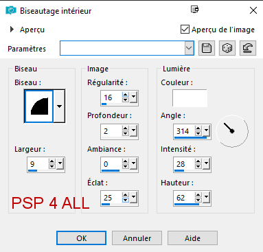 Ajouter un calque et remplir de blanc. Sélections > Modifier > Contracter 2 pixels. Supprimer. Remplir de rouge et contracter 5 pixels. Supprimer. Remplir de blanc et contracter 2 pixels. Supprimer. Rajouter le calque Crédits. Martine 2 décembre 2020 Si vous avez des questions, n'hésitez pas à me contacter. ![]() ![]() |