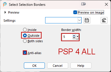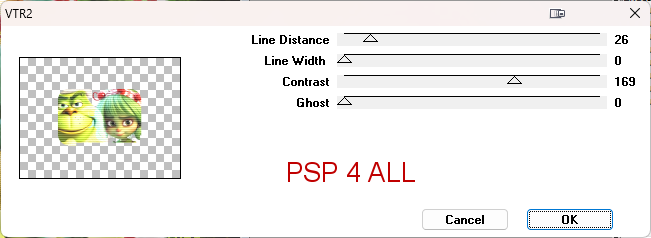 42. Layer 6 - Click on the layer below the 2 tubes, the layer filled with the gradient. 43. Load Alpha Selection #6. 44. Selection > Promote selection to layer. 45. Layers > Arrange > Move up. 46. Apply penta.com > VTR2 - configuration par défaut. 47. Selections > Float > Defloat > Selections > Modify > Select Slections Borders.