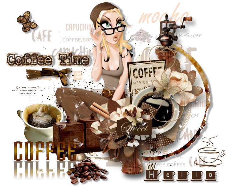 You can do pretty much what you like with your result: create signatures with name added, extras or stats, websets. Give all the credits that are required. ![]() Tube of your choice, free or not, but the credit for the tube must be added to your tag. I am using a tube ©PinUp Toons™ - www.pinuptoons.com, acheté à CILM. Don't forget your license! It must be legible on your tag. Cluster: *It's coffee o'clock*, by Kama - a blog freebie using a kit by Mediterranka Design - Direct link: here.