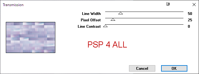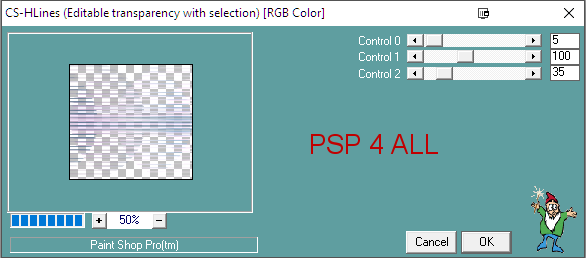 Sélections > Ne rien sélectionner. ETAPE 3 - Tube, cercle et Bordures Tube : Ajouter le tube à gauche. Cercle : Sélectionner l'intérieur du cercle. Sélections > Modifier > Agrandir 8 pixels. Ajouter un calque et remplir du même dégradé. Flou > Flou Gaussien 20.00 Appliquer Carolaine & Sensibility > CS-HLines.