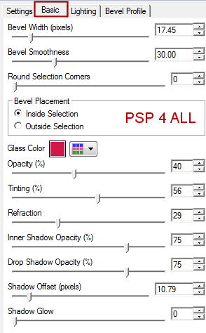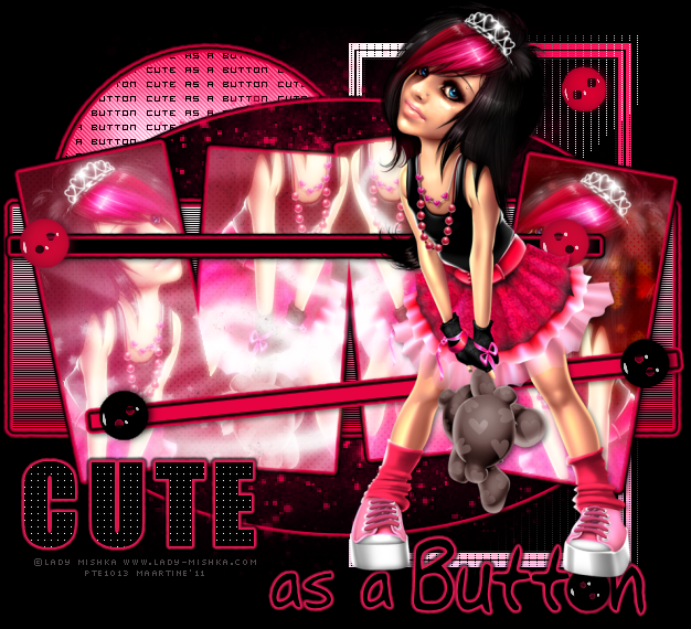 STEP 9: Buttons There are six. I coloured mine in black #000000 and also in my main colour #E70241. Select the button with your magic wand, add a layer and fill with the colour of your choice. Delete the original button and apply Eye Candy 5 > Impact > Glass affect on the new button. Selections > Select None.