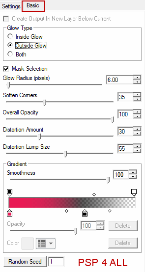 And then apply the first Gradient Glow. STEP 11: Wordart As a button. Select, add a layer and color in black and add the same Gradient Glow. Delete the wordart and wordart back. STEP 10 : Add your tube. Apply the following drop shadow.