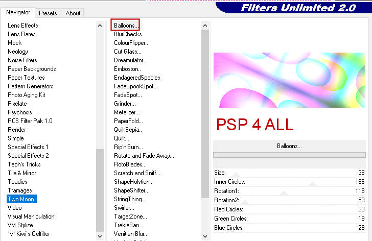 Puis appliquer Filters Unlimited > Two Moon > Ballons