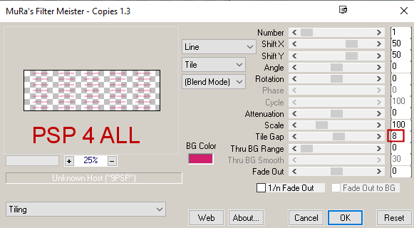 Cliquer sur Suppr. Sélections > Ne rien sélectionner. Faire exactement la même chose avec la bordure du milieu. Il faut enlever tout ce qui est blanc. Bien s'assurer que l'on est bien sur la bordure du milieu avant de commencer. Puis garder la sélection. Se mettre sur le rectangle rempli de blanc. Il doit être sous le texte Happy Easter. Cliquer sur Suppr. Sélections > Ne rien sélectionner. ETAPE 3 - Le Texte Ouvrir une nouvelle image 760 x 225. Ajouter le texte Happy Easter ou le texte de votrechoix avec la police Arial, couleur #D11E6D, vectorial avec anticrénelage sur net. Convertir en calque raster. Cliquer sur Objets > Centrer sur le support. Appliquer Mura's Meister > Copies