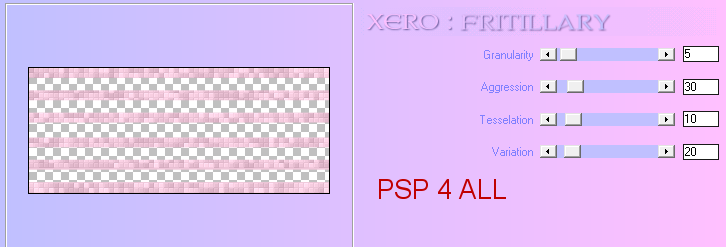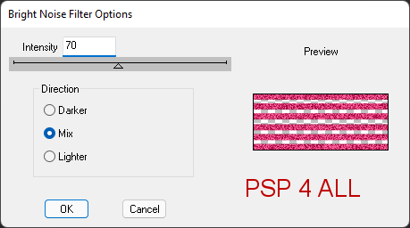 Light Lines (B2) - Apply dsb flux > Bright Noise - 50 and cliquer again on Mix. Close this layer. Light Lines (B3) - Apply dsb flux > Bright Noise - 50 and cliquer again on Mix. Close this layer. Dark Lines (T) - Layers > Merge Down. (Calque Dark Lines (T) and Dark Lines (B)). Dark Lines (B) - Fill with #EFC6D9. Apply Xero > Fritillary