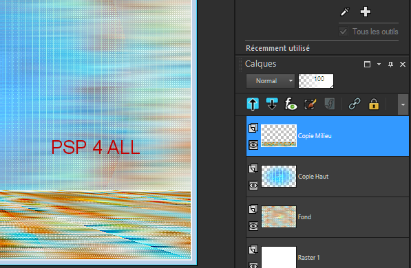 Mettre la Copie Milieu au dessus de la Copie Haut. Et votre Palette Calques devrait être comme la mienne.