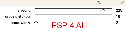 Apply Alien Skin Eye Candy 5 > Impact > Glass. Choose my preset PSP4ALL_MF_HalloweenW_mf22.f1s. Selections > Select None. Delete medium black circle. Back on purple circle: mine is now yellow. Apply penta.com > Dot and Cross