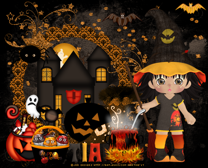 ![]() Scrapkit : Spook Time par Clarez Creationz, un kit gratuit à télécharger à ici. Mask : Halloween Masks 6-10 par Kristin à Toxic Desirez. Télécharger ici. C'est le troisième, le mask 8. Polices : D3 Witchism pour le texte et Pixelette pour les crédits. Vous pouvez télécharger mon E-Book qui vous permettra de travailler sans être connecté. ETAPE 1 : Masque, Eléments et Tube Ouvrir une image 680x550. Remplir de noir. Ajouter un calque. Sélections > Sélectionner tout et copier coller paper 18 dans la sélection. Sélections > Ne rien sélectionner. Ouvrir le masque mask 8 de Toxic Desirez. Calques > Nouveau calque de masque > A partir d'une image. OK. Calques > Fusionner > Fusionner le groupe. Dupliquer ce calque. Ajouter un calque. Sélections > Sélectionner tout et copier coller ST38 dans la sélection. Sélections > Ne rien sélectionner. ST08 - 85%. A gauche. ST01 - 50%. Au milieu du cadre et faire glisser le calque dessous. ST20 - 15%. En haut vers le milieu. ST17 - 15%. En haut à droite. ST18 - 35%. En bas à gauche. ST27- 35%. En bas à gauche. Voir mon tag. Ajouter le tube, à droite. ST41 - 30%. En bas au milieu. ETAPE 2 : Texte et Crédits Texte : Mettre le nom que vous voulez avec la police D3 Witchism. Puis colorer chaque lettre - en gris avec #312923; en jaune avec EAA82C et orange avec #D42F18. J'ai utilisé les couleurs du Colour Swatch du kit. Appliquer un Effets > Effets 3D > Biseautage intérieur