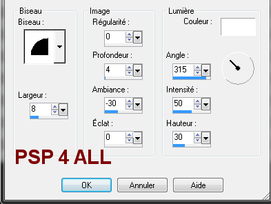 Template : Un de Dawn de Sixxbug Creationz de Blissfully Beth - Lien : New Winter & Holiday Template à télécharger sur le blog de Creative Misfits. Scrapkit : Freebie - Xmas Candy Cane - un kit de Lacarolita's Designs. Lien direct ici. Masque : C'est un masque de Chelle à Weescotslass Creations - Mask WSL_84 Glitter Tiles : 2 du site d' Another Jo's Paint Shop Pro Resources - Ruby Glitter et White Glitter à télécharger ici. Police : Kingthings Christmas et Pixelette pour les crédits. Vous pouvez télécharger mon E-Book qui vous permettra de travailler sans être connecté. ![]() Ouvrez votre matériel dans PSP. Cliquez sur la Template. On ne travaille pas sur l'original. Alors cliquez sur la touche Shift et la lettre D (Maj(Shift) +D) de votre clavier pour faire une copie. Fermez l'original. Fermez le calque Info tout en haut sur la palette calque. ETAPE 1 Placez-vous sur le calque Raster 1 et remplir de blanc. C'est la couleur que je demande pour la page Résultats de PSP 4 ALL. ETAPE 2 Ajoutez un nouveau calque. Remplissez avec le papier : paper1 à 50%. Appliquez votre masque WSL_84. Masques > Nouveau > A partir d'une image - OK. Puis Masques > Supprimer. Dans PSP 8 et au-dessus, c'est sous Calques > Nouveau calque de masque > A partir d'une image. Et puis supprimer une fois que vous avez mis le masque. Mettre l'opacité de ce calque à 55. ETAPE 3 Placez-vous sur le calque Frame1 : en faire 3 copies que vous nommerez Calque 1, Calque 2 et Calque 3. Il y a trois images dans l'animation 'Glitter White' que nous allons utiliser pour les remplir. Ouvrez White Glitter dans Animation Shop. Cliquez sur la première image et Fichier > Exporter dans PSP. Puis se servir de ce glitter pour remplir Calque 1. Vous faites Sélections > Tout Sélectionner > Sélections > Rendre Flottante > Sélections > Remettre à l'état statique et vous remplissez avec la première image du White Glitter. Gardez la sélection et placez-vous sur le calque2. Allez prendre la 2ème image du White Glitter dans AS et en remplir Calque 2 comme vous avez fait pour Calque 1. Répétez pour Calque 3 mais cette fois vous prenez la 3ème image du glitter. Sélections > Désélectionner tout. ETAPE 4 Placez-vous sur le calque Blue oval : puis Sélections > Tout Sélectionner > Sélections > Rendre Flottante > Sélections > Remettre à l'état statique. Ajoutez un calque et remplir avec le papier paper1 à 50%. Supprimez le calque original. ETAPE 5 Placez-vous sur le calque Bar Frames : en faire 3 copies que vous nommerez Calque 1, Calque 2 et Calque 3. On va les remplir avec le glitter "Ruby Glitter" que vous recolorez avec la couleur de votre choix - Couleurs > Coloriser ou bien Réglage > Teinte et saturation. J'ai recoloré en rouge en mettant la Teinte et Saturation à 255. Vous remplissez le Calque 1 avec la 1ère image du glitter. Vous faites Sélections > Tout Sélectionner > Sélections > Rendre Flottante > Sélections > Remettre à l'état statique et vous remplissez avec la première image du glitter. Vous gardez la sélection et vous vous placez sur le Calque 2 que vous remplissez avec la 2ème image du glitter. Placez-vous sur le calque 3 et remplissez-le avec la 3ème image du glitter. Sélections > Désélectionner tout. ETAPE 6 Placez-vous sur le calque Bars : puis Sélections > Tout Sélectionner > Sélections > Rendre Flottante > Sélections > Remettre à l'état statique. Ajoutez un calque et remplir avec le papier paper 7 à 50%. Supprimez le calque original. ETAPE 7 Placez-vous sur le calque Frame 2 : en faire 3 copies que vous nommerez Calque 1, Calque 2 et Calque 3 et remplir avec le glitter "Ruby Glitter". Voir ETAPE 5. ETAPE 8 Placez-vous sur le calque Pink oval : puis Sélections > Tout Sélectionner > Sélections > Rendre Flottante > Sélections > Remettre à l'état statique. Ajoutez un calque et remplir avec le papier paper 1 à 50%. Supprimez le calque original mais gardez la sélection. Ajoutez un nouveau calque. Cliquez sur le calque Happy Holidays et Edition > Copier et Edition > Coller comme nouvelle image. Cliquez sur cette image avec le texte et Edition > Copier et revenir sur la calque que vous avez ajouté au-dessus de Pink oval et copier dans la sélection. J'ai recoloré le texte en blanc. Couleurs > Ajuster > Teinte/ Saturation/ Luminosité ou Réglage > Teinte et Saturation > Teinte/ Saturation/ Luminosité et mettez à 100. Cliquez sur Ok. ETAPE 9 - Les éléments et le tube L'arbre de Noël - Lacarolita_X-mas Candy Cane tree à 55% de l'original. A placer au-dessus du calque Bars et en dessous du calque Frame2. Le tube - au-dessus de tous les calques. Les cadeaux - Lacarolita_X-mas Candy Cane presents à 35% de l'original à placer à gauche. La Fleur - Lacarolita_X-mas Candy Cane flower3 à 20%, en haut à droite. ETAPE 10 Enregistrez une dernière fois et puis redimensionnez votre tag à 80% avec tous les calques non fusionnés! Nouveau calque et ajoutez vos crédits avec une petite police comme Pixelette , Taille 6. Et votre nom. J'ai utilisé Kingthings Christmas, Gras en taille 72 avec le papier paper1. Et j'ai appliqué un effet 3D : biseautage intérieur.