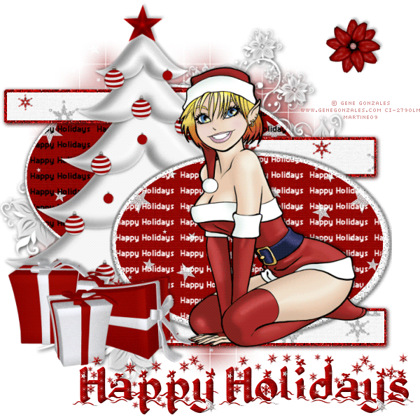 ETAPE 11 Ajoutez une ombre une ombre portée: H = -3 et V = 3 Opacité = 30 et Flou = 6. sur le tube, les cadeaux, la fleur et l'arbre. ETAPE 12 - L'animation Fermez les calques suivants : les 3 Calque 2 et les 3 Calque 3 c'est à dire 6 calques en tout et fusionnez visibles les autres calques. Copier ce calque dans Animation Shop. Revenir dans PSP et cliquer sur la flèche Annuler la dernière commande jusqu'à ce que tous les calques soient ouverts. Cette fois fermez tous les Calque 1 et Calque 3 - 6 en tout et fusionner visible. Collez cette nouvelle image après la 1ère dans AS. Revenir dans PSP et cliquer sur la flèche Annuler la dernière commande jusqu'à ce que tous les calques soient ouverts. Cette fois fermez tous les Calque 1 et Calque 2 - 6 en tout et fusionner visible. Collez cette nouvelle image après la 2ème dans AS. Enregistrez en gif. Martine 6 décembre 2009 Si vous avez des questions, n'hésitez pas à me contacter. ![]() ![]() |