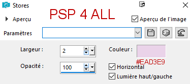 Appliquer le même Eye Candy > Glass. Dupliquer > Image > Miroir > Miroir horizontal. ETAPE 5 - Bordure et Crédits Ajouter un calque et remplir avec #AE60AD. Sélections > Modifier > Contracter 10 pixels. Cliquer sur Supprimer. Sélections > Ne rien sélectionner. Appliquer Effets de Texture > Stores