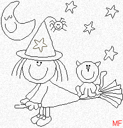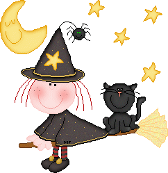 J'ai ajouté un calque et j'ai décoré le chapeau et la robe avec des petits points de couleur #DBB553. *Le balai: Couleurs2 Contour: #693B1D et #FDCE7B; remplir avec #9A5C24 et #FAE7A6.