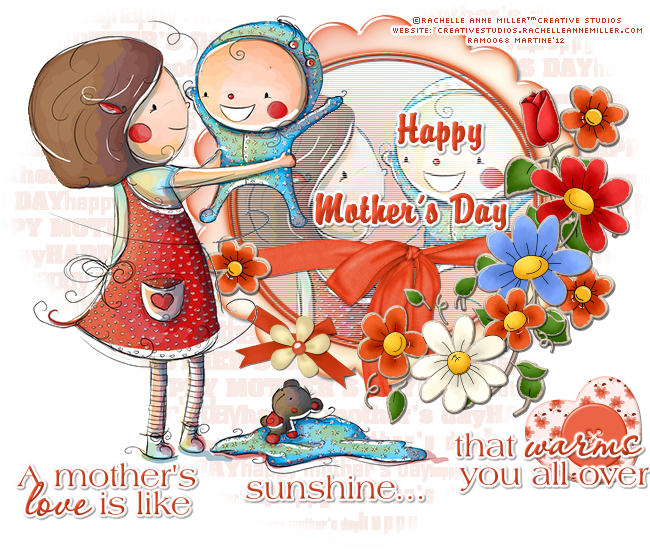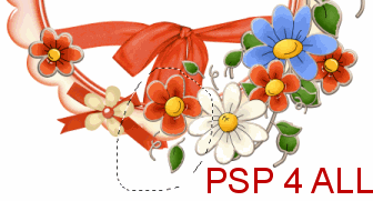 DS_MothersFlowers_Kit_Chipboard Flower3 - 10%. Image > Mirror. DS_MothersFlowers_Kit_Chipboard Flower - 10%. DS_MothersFlowers_Kit_Chipboard Flowers - 12%. DS_MothersFlowers_2011_Bow2 - 6%. DS_MothersFlowers_2011_Flower - 3%. DS_MothersFlowers_Kit_Wrap3 - 10%. Place under the 2 frames. And colorize: hue at 8 and Saturation at 205. Then select the bottom part of this ribbon Wrap3