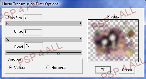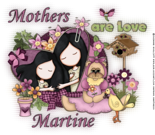 Répéter cet effet mais cette fois sélectionner Horizontal. Ouvrir le fond blanc et si nécessaire, réduire l'opacité du calque avec l'effet Linear Transmission. L'opacité du mien est à 70%. ETAPE 6 Texte/ Nom et Crédits : Ne pas laisser le tag vide. Ajouter votre nom avec la police Monotype Corsiva ou une autre de votre choix - Taille 62 - premier plan #000000 et arrière-plan #B76C90 avec antialias. Appliquer une ombre portée. Ajouter les crédits nécessaires avec Pixelette en taille 6 sans antialias. Enregistrer en jpg optimisé avec un fond blanc pour la page résultats. Martine 6 mai 2009 Si vous avez des questions, n'hésitez pas à me contacter. ![]() ![]() |