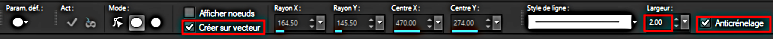 Copier l'élément MD-FRAME 1 en nouveau calque. 105%. Objets > Aligner > Centrer sur le support. Copier l'élément MD-24 en nouveau calque, en haut, à gauche, au dessus du fond blanc. Dupliquer > Miroir. Calques > Fusionner > Fusionner le calque de dessous. Dupliquer. Image > Miroir vertical. Ajouter le tube. Copier l'élément MD-3. 60%. Rotation à droite 130°. MD-34 - 50%. A droite. Calques > Arranger > Déplacer vers le bas. Dupliquer. Image > Miroir horizontal. ETAPE 2 - Le texte et Crédits *** Le texte - Un délicieux brin de muguet pour du bonheur toute l'année ! - A delicate sprig of lily of the valley for happjness all year round! ou celui de votre choix. Police = SilkaBanner Semibold. Activer l'outil Forme. Choisir l'Ellipse - anticrénelage, création vector, largeur 2. Mettre noir en premier plan et arrière-plan et fermer l'arrière plan.