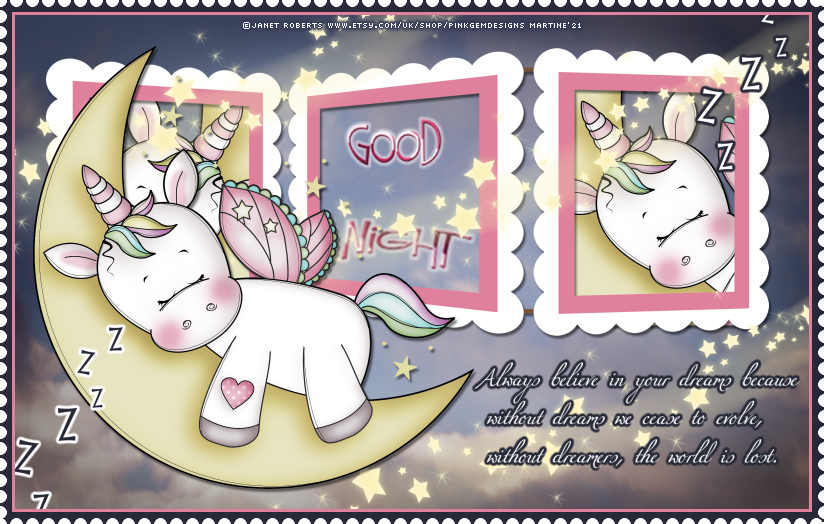 Ajouter le texte Good Night dans le cadre du milieu. Ajouter l'élément star trail, redimensionné à 40%. Je l'ai mis en haut, au milieu et en bas. Ajouter le tube à gauche. ETAPE 4 - Texte et Crédits Le wordart : J'ai coloré en blanc. Réglage > Teinte et Saturation > Teinte/ Saturation/ Luminosité. Mettre la Saturation et la Luminosité sur 100. Redimensionner à 18%. Mettre à droite et en bas. Appliquer Eye Candy 4000 > Gradient Glow