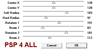 Template: by Daira of Loving Miranda Creationz : Spring Tag Templates II - Template So beautiful Mask: one of Cat - n°298Insatiable Dreams here http://insatiabledreams.net/Cat_s_Masks_too.html Plugins: Eye Candy 3 - Eye Candy 4000; penta.com - Color Dot & jeans; Tramages - Tow The Line & Pool Shadow & Starmaker; Filters Unlimited - Patterns Generator Fonts: Unchanged Thoughts for the name and Pixelette for the credits. You can download my E-Book which will let you work without being connected. ![]() STEP 1 Template: Open then Window > Duplicate and close the original template. Save and delete the credit layer at the top. Then I changed the canvas size to 645x500. Background: Click on the first layer at the bottom and fill with black. That's the colour I would like for the Results page of the group . STEP 2: Mask Choose two colours from your tube, one darker than the other. I used the same colours throughout the tut. And I made a gradient with those two colours. Maskue : Add a layer and fill with your gradient. Set the Angle at 40 and Repeats at 3. Apply Cat's mask 298. Masks >New > From Image - OK. Then Masks > Delete. In PSP 8 and more recent versions of PSP, go to Layers > New Mask Layer > From Image. OK. Click on Masks > Delete STEP 3: Colours and plugins Right Circle: Activate and Selections > Select All > Selections > Float > Selections > Defloat then add a layer and fill this layer with the gradient above. Keep selected and apply Tramages > Starmaker :