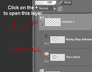 The layer opens.Close the New Ellipse layer at the bottom. Click on the layer Vector 1 and then go to Layers > Merge > Merge down.. Apply Eye Candy 4000 > Gradient Glow