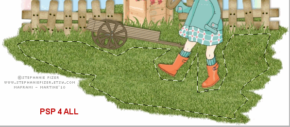 This tool is like the lasso tool in PSP. Click, go round to mark out what will be your selection - the area where you will have your puddles and then right click to close off. I stayed away from the edges because i did not want any white reflection in the puddles, I just wanted puddles in the grass.