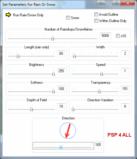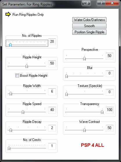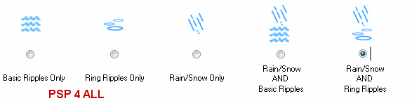 Select the last option Rain/ Snow AND Ring Ripples. Then click on the icon