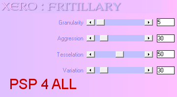 Selections > Select None. Delete the original layer. Add deco Clover1 as a new layer. Vertical 2 - Repeat. Change the colour to #87a245. Add deco Clover2. Vertical 3 - Same as Vertical 1. Same colour and same deco. Scalloped Edge - Selections > Select All. Select > Float > Select > Defloat. Add a layer > Fill with #EAE665. Selections > Select None. Delete the original layer. Apply the same Gradient Glow. Rectangle - Selections >Select All. Select > Float > Select > Defloat. Add a layer > Fill with #87a245. Delete the original layer. Open cdLuckyCharm_Paper7. Effets > Photo Effects > Blak and White Film... Add a layer and fill with this paper - scale at 20%. Blend mode on Overlay. Layers > Merge > Merge Down. Selections > Select None. Apply the same Gradient Glow. And now apply Xero > Fritillary