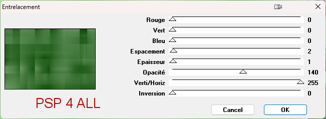 7. Mettre l'original sur Multiplier et la copie sur Ecran. 8. Fusionner le calque de dessous. 9. Appliquer Jeux de ligne > Entrelacement