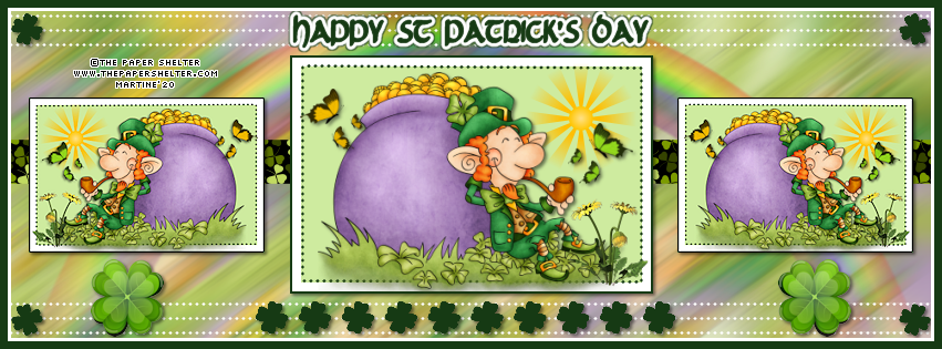 Fill with green: #163a14. Selections > Select None. Add a layer. Selections > Load/Save Selection > Load Selection From disk. Choose PSP4ALL_MF_StPat20_SelCorners. Fill with green: #163a14. Selections > Select None. STEP 3 - The 3 images Open a new image 328x215. Fill with green #163a14. Selections > Select All > Selections > Modify >Contract 2 pixels. Add a layer and fill with white. Selections > Modify > Contract 8 pixels. Add a layer and fill with pale green: #ceeb9f. Selections > Select None. With the Pen Tool, in green: #163a14, same settings as before in Step 2, trace around the pale green rectangle. See my tag. Add the tube. 047 element (St Patrick's Day) - 10%. Place on the right. 034 element (St Patrick's Day) - 6%. Image > Mirror Horizontal. Place on the left. 033 element (St Patrick's Day) - 6%. On the right of the tube. 027 element (St Patrick's Day) - 10%. On the right. Edition > Copy Special > Copy Merged. Click on your original work. Edit > Paste as a new layer. Objects > Align > Center in Canvas. Duplicate. Image > Resize 65%. put on the right. Objects > Align > Vertical Center. Duplicate. Mirror Horizontal. Adjust > Sharpness > Sharpen on both the little images. STEP 4 - Text and Border Add the text with the Tristram font in green:#163a14. Appy Eye Candy 4000> Gradient Glow