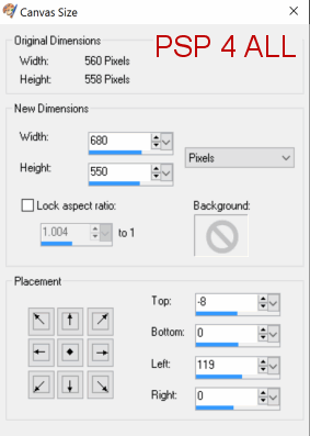 Ouvrir la template. En faire une copie et fermer l'original. Redimensionner à80%. La template mesure maintenant 560x558. Cliquer sur Image > Taille du Support pour agrandir à gauche et enlever quelques pixels en haut.