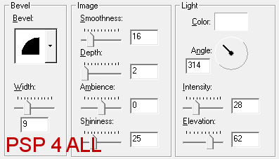 If needed, sharpen the small element. Adjust > Sharpness > Sharpen. pb-ip-rainbow4 - On the left. pb-ip-rainbow3 - On the right. pb-ip-frame2 - In the middle. pb-ip-frame1 - On the left. pb-ip-ribbon-wrap - 53%. Top and on the right. I removed a bit of the ribbon, right at the top. pb-ip-balloon - On the right. I coloured the balloon in the middle in red, using the red from the Leprechaun. Hue=255 and Saturation=228. I placed my tube in the middle. pb-ip-rose - Image > Mirror. Place on the right. pb-ip-rose - Colorize as before, same settings: Hue=255 and Saturation=228. pb-ip-drink1 - 50%. pb-ip-drink3 - 55%. pb-ip-shoe - 50%. In the middle and at the bottom. pb-ip-pot-of-gold2 - 55%, and on the left of the clog. pb-ip-shamrock-leprechaun - 45%. At the top on the cauldron. pb-ip-clover-coins - Image > Miroir. On the right. pb-ip-Leprechaun - 55%. On the right. pb-ip-flower2 - 35%. Bottom and left. I added 3 clovers randomly on the top left that I first colored in red. I used one of the clovers from the pb-ip-frame1. pb-ip-mushroom - 45%. Bottom and left. pb-ip-irish-pride-wa - colored in red as before. STEP 3: Your Text and Credits Text: Name or text of your choice - Porky's font using red #C00000. Then apply an Inner Bevel.