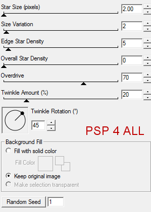 Keep selected. Close the background layer and merge visible. Apply Xenofex 2 > Constellation. Random seed at 1.