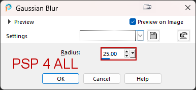 7. Adjust > Blur > Gaussian Blur. Radius on 25.