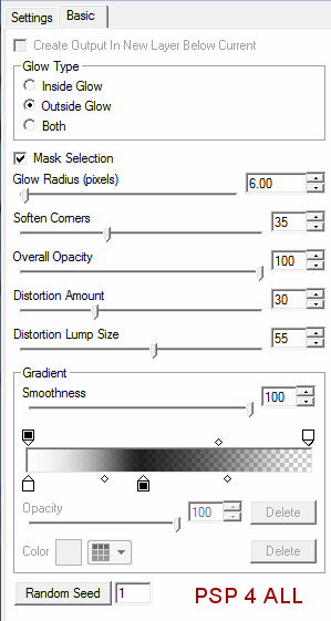 Désélectionner tout. Appliquer le même Gradient Glow. Supprimer le calque original. Le tube : Redimensionner si nécessaire et copier coller en nouveau calque. Y ajouter une ombre portée.