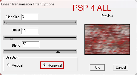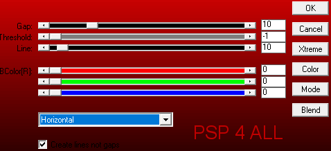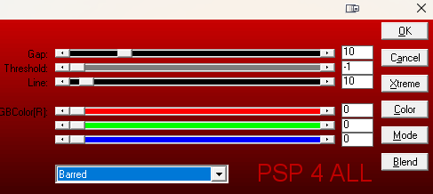 Avec la baguette magique, sélectionner la bande rouge de 22 pixels et appliquer AP(01) AP01 (Innovations) >