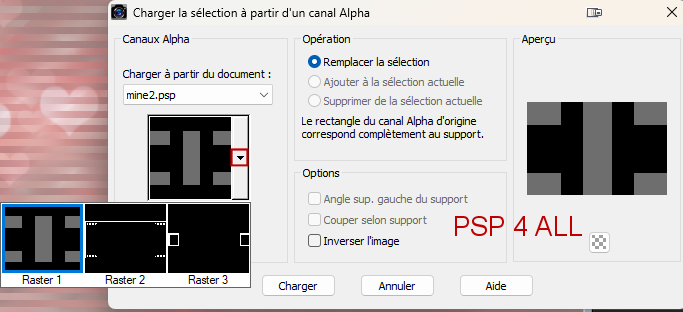 Ouvrir le calque Raster 1. Sélections > Charger/enregistrer une sélection >