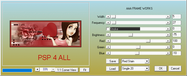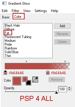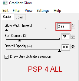STEP 2 Add a layer and fill with white. Layers > New Mask Layer > From Image and select Narah_Mask_1166. Click on OK. Layers > Merge > Merge group. Add a layer and fill with white. Layers > New Mask Layer > From Image and select Narah_Mask_1258. Click on OK. Layers > Merge > Merge group. STEP 3 Add the flowers on the left. Layer Properties > Blend mode on Luminance (Legacy). Add a Drop Shadow : 4, 4, 70, 7. Add the tube on the right. Apply the same Drop shadow. STEP 4 Add the text on 3 lines: ♥♥♥ i will always love you ♥♥♥, or one of your choice, with the font Love is a many complicated thing, in noir. Click on the underscore _ to make the heart. Effects > Plugins > Eye Candy 4000 > Gradient Glow. Color > Click on Fat. Change the colour